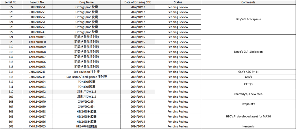 Right, now let’s take a look at the CDE reviewing bulletin board. On the biologics side, 23 new INDs are being filed with CDE, and most of them are familiar names. And it’s great to see a new IND from an old face.